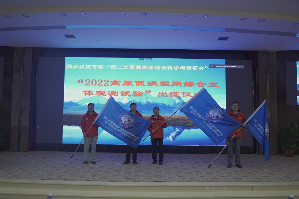 本次组网综合立体观测试验总负责人,中科院青藏高原所地气作用与气候效应团队马耀明研究员宣布出征、授科考旗。他说:“本次试验将加深对高原低涡的认识,为青藏高原天气监测与预报、灾害性天气预警及气候环境预测等提供更精确的观测数据和决策依据。”