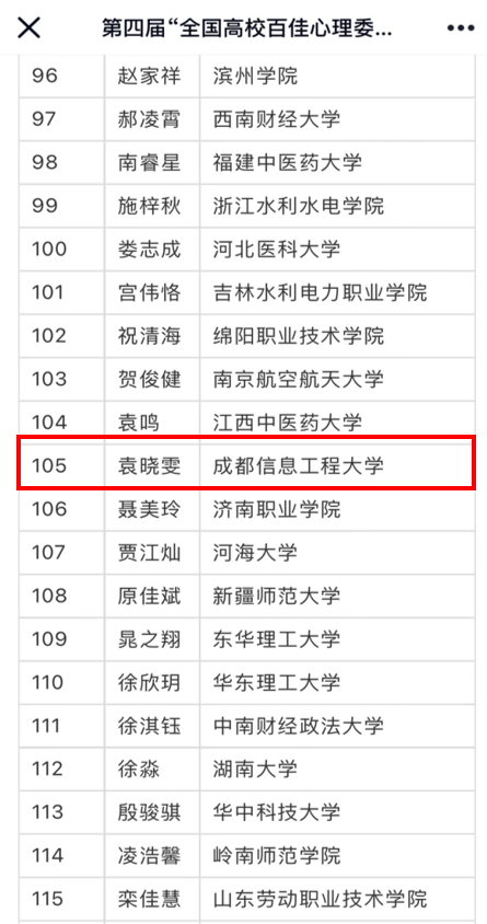 据悉,本次评选活动共有来自全国300余所高校1000余名心理委员参评,最终评选出 “全国百佳心理委员”150名,“全国百佳心理委员提名奖”113名。