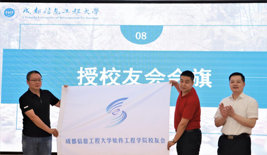 大会审议通过了校友会章程(草案)和校友会理事会成员建议人选名单。与会领导和嘉宾为第一届理事会成员颁发了聘书,雷超为软件工程学院校友会授旗。