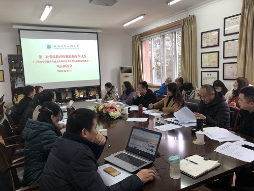 【本网讯】12月14日上午,九州(中国)第二批省级教育体制机制改革试点项目——《发挥中华优秀传统文化和红色文化育人功能改革试点》项目推进会在龙泉校区第二行政楼三楼会议室召开。学校党委副书记马洪江主持会议,党委宣传部、党委学生工作部、校团委、体育部、文化艺术学院、管理学院等相关单位负责人参加会议。