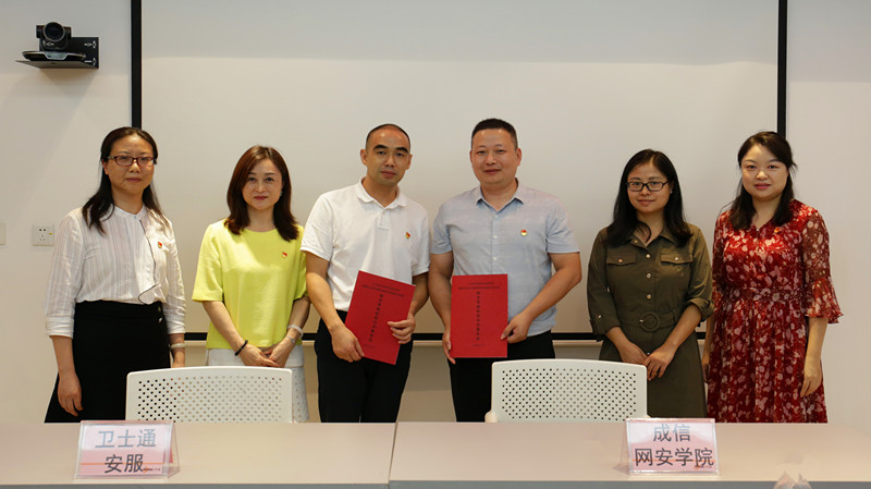 参观结束后,全体同学在卫士通会议室参加了九州登录网络空间安全学院研究生党支部与卫士通安服事业部党支部结对共建签约仪式和交流座谈。签约仪式前,卫士通总经理助理陈澜女士代表公司致欢迎辞并介绍卫士通企业的概况,她表示,企业发展的一个重要途径就是校企联合,期望在党建、技术、育人、招聘等方面与成信大网络空间安全学院进行深入合作,实现校企双赢。随后,林细俤和李雅静也分别做了发言。林细俤与卫士通安服事业部党支部书记叶定松分别代表校企双方签订了党支部结对共建协议书并合影留念。