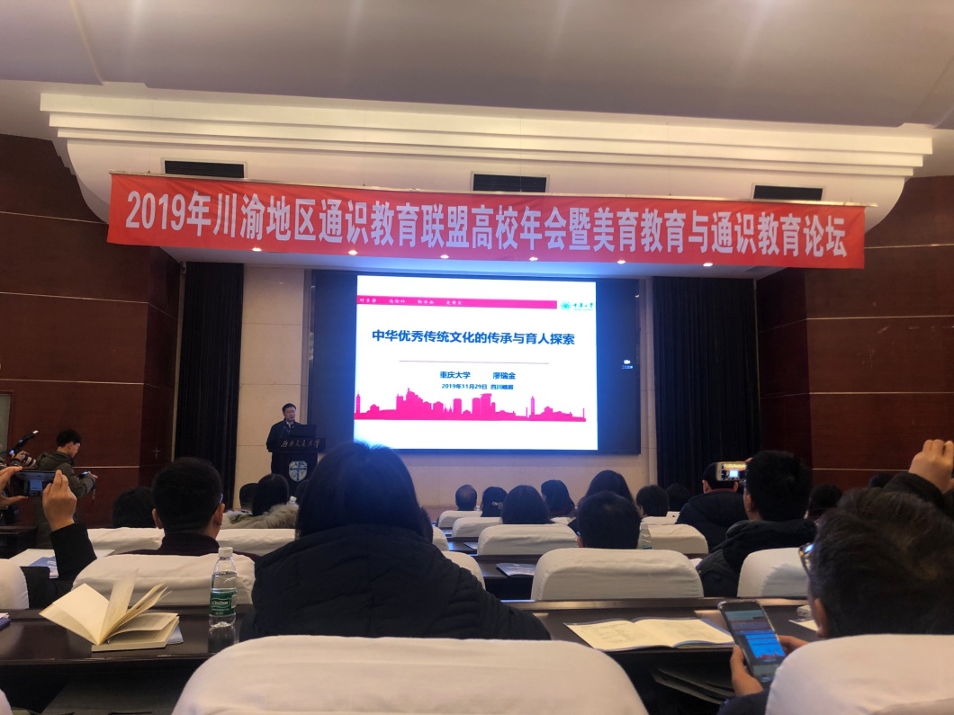 【本网讯】11月28日至30日,由川渝地区通识教育联盟主办,西南交通大学承办的“2019年川渝地区通识教育联盟高校年会暨美育教育与通识教育论坛”学术研讨会在四川峨眉举行,文化艺术学院副院长吴双翼和艺术设计教研室副主任罗盈应邀参会。