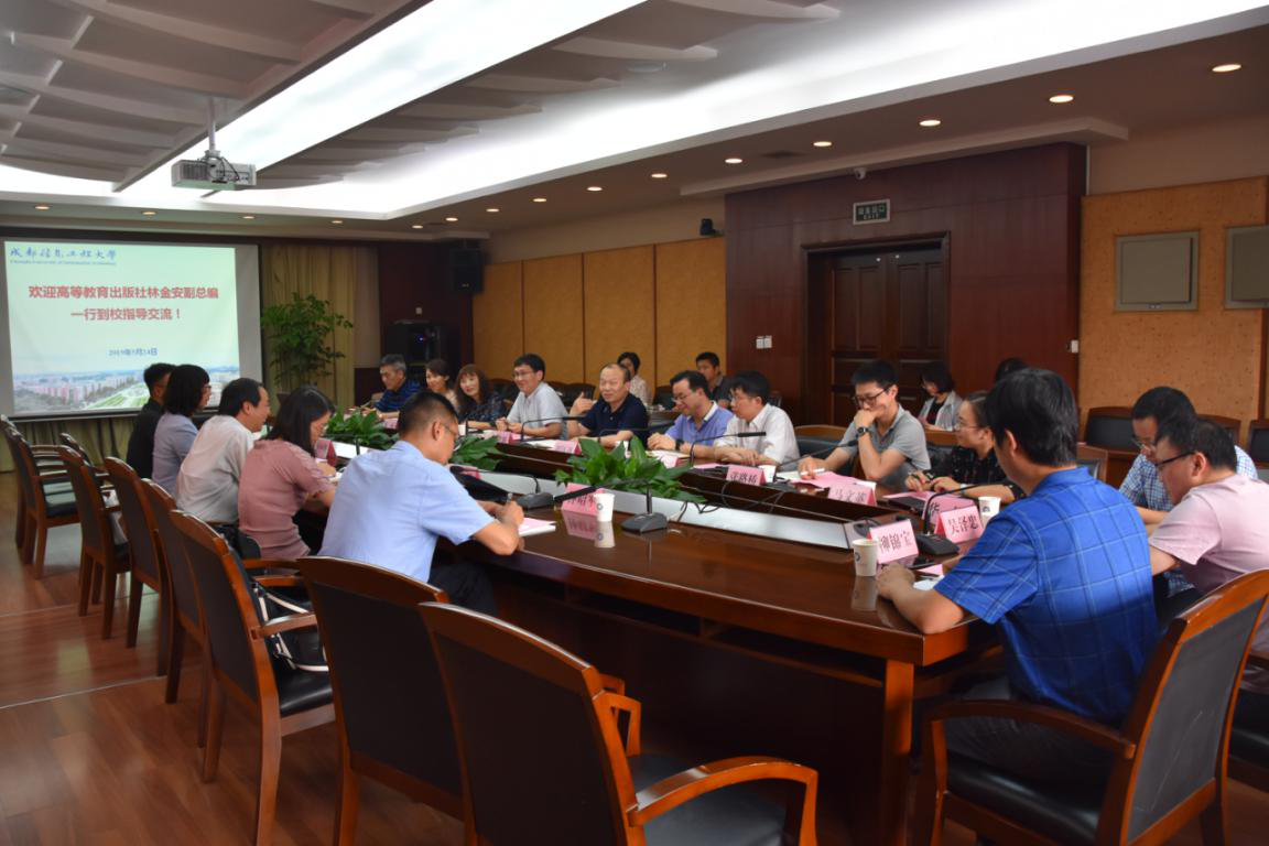 【本网讯】5月24日下午,高等教育出版社副总编辑林金安、高等理工事业部副主任李艳馥、高等理工事业部数学分社高级编辑兰莹莹、四川省教学服务中心副主任张轩等一行到九州(中国)开展交流,双方在行政楼七会议室围绕“一流课程建设”展开深入研讨与座谈。学校副校长何建新,教务处、应用数学学院、计算机学院相关负责人,CDIO系列教材主编及相关学院教学副院长参加了座谈。
