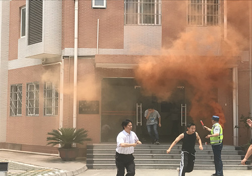 演练设定背景为20栋学生公寓突发大火,火势迅速蔓延,现场浓烟滚滚,校卫队员接警后,学校立即启动火灾疏散应急预案,拉响警报,应急救援队伍携带灭火器材、救生担架快速出警到达。应急救援人员引导疏散楼内学生的同时,进行初期火灾的扑灭和被困人员的营救。学生在疏导人员的指挥下,快速、有序地按既定路线安全疏散到指定位置。现场“明火”扑灭,被困人员得到救助。整个过程组织严密、井然有序。