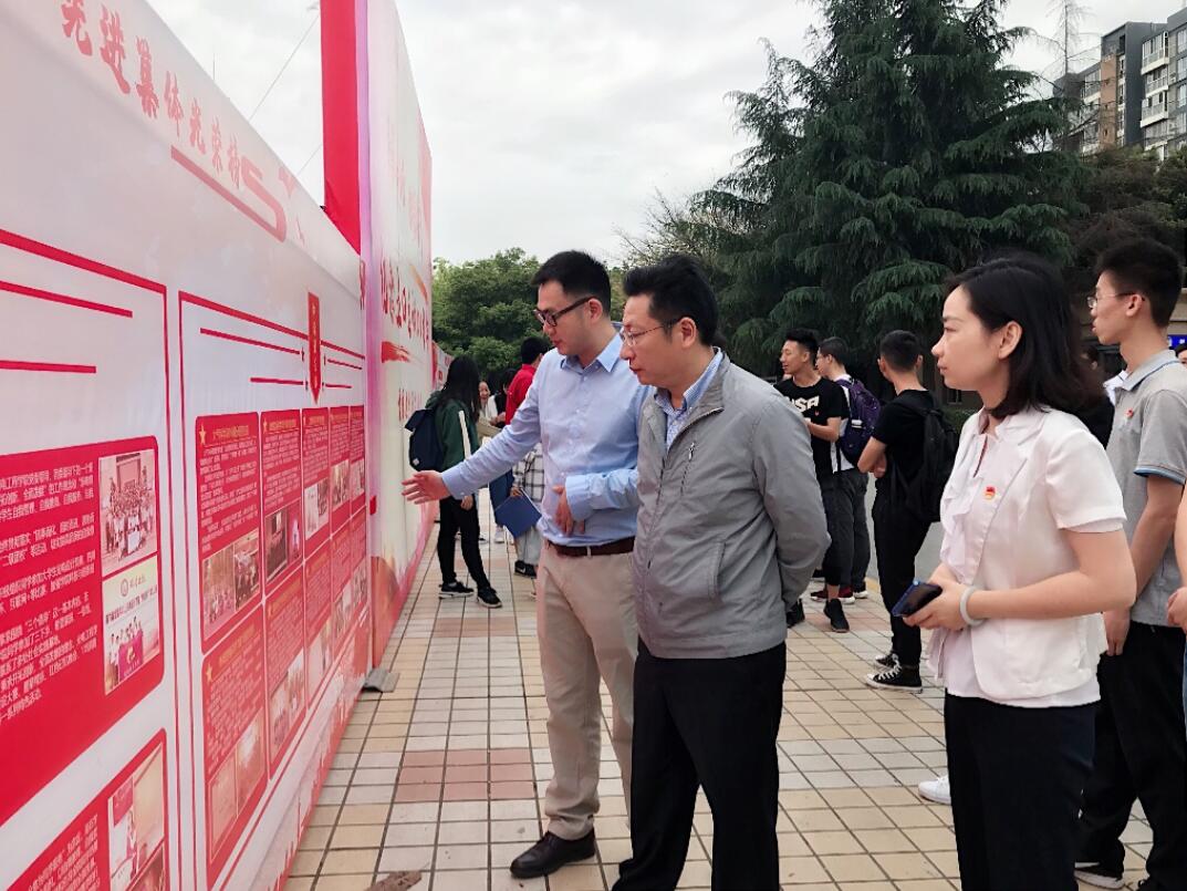 升旗仪式结束后,马洪江与师生一起参观了纪念五四运动100周年图片展以及学校五四评优先进集体风采展示。
