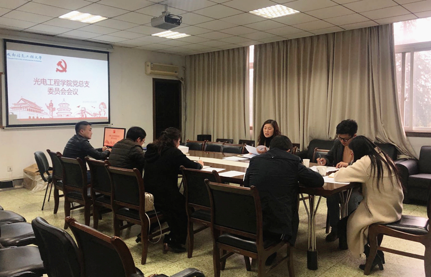 【本网讯】3月14日下午,光电工程学院党总支在信息楼312召开光电工程学院党总支委员会议。会议由书记邓丽琴主持,全体总支委员参加。
