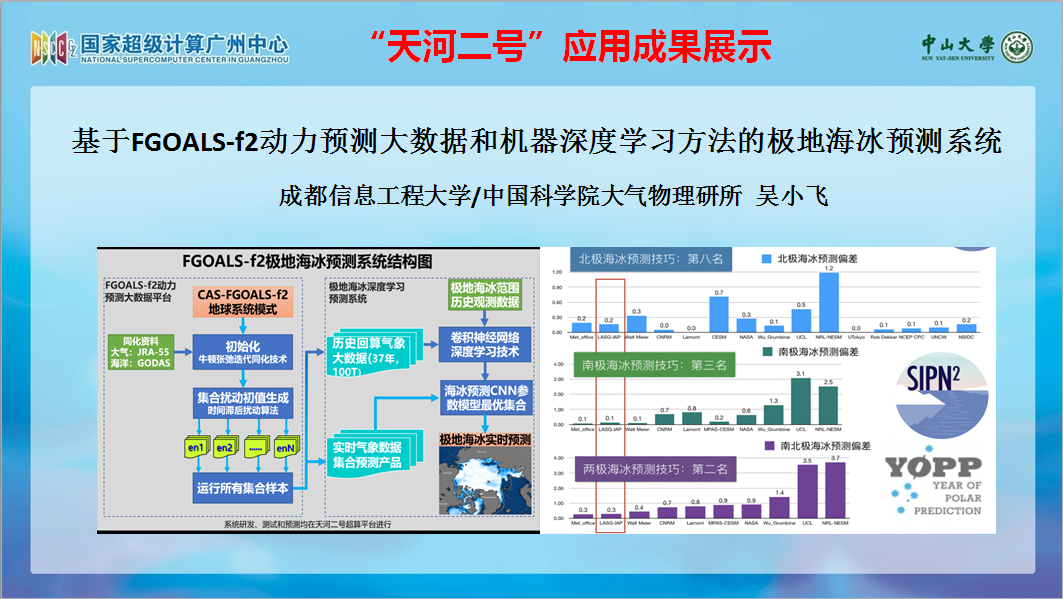 年度优秀应用颁奖典礼上,吴小飞博士与中国科学院大气物理研究所合作研发的“基于FGOALS-f动力预测大数据和机器深度学习方法的极地海冰预测系统”荣获2018“天河之星”优秀应用奖。本年度优秀应用评选收到来自全国各地100多个项目组提交的应用投稿,投稿应用涵盖工程仿真、航空航天、气象海洋环境、建筑信息模型、新材料新能源、生物信息与生物医药、数字媒体、智慧城市等领域。经过层层遴选,20个项目组的应用成果最终脱颖而出,荣获“2018‘天河之星’优秀应用奖”。