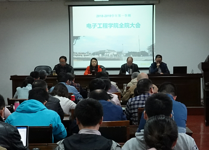 这次大会是本学期召开的第二次全院大会。会议通报了前期开展学科评估等工作进展情况,安排布置了近期工作。电子工程学院党总支书记高永华在会上要求全体教职工要有紧迫感、责任感,抓紧补短板,全院齐努力,保证不折不扣完成学校和学院下达的目标责任任务。