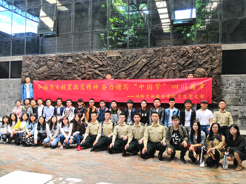 【本网讯】在汶川地震十周年到来之际,5月11日早上,网络空间安全学院所有辅导员、三个学生党支部所属的学生党员和入党积极分子在网络空间安全学院党总支副书记林细俤的带领下前往位于大邑县安仁古镇的建川博物馆,开展“弘扬伟大抗震救灾精神 奋力谱写中国梦四川篇章”为主题的纪念汶川地震十周年的党组织生活。