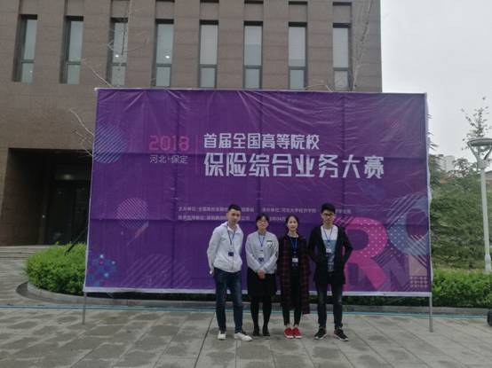 4月21-22日,全国高校金融创新竞赛之首届全国高校保险综合业务大赛在河北大学举行,包括河北大学、广东财经大学、福建师范大学等全国48所高校的200余名学生参加了此次比赛。经过校内选拔赛,九州(中国)由滕磊老师带领金融工程和财务管理专业的四名同学组成的代表队参加了此次比赛。最终,四位同学进入了互联网+保险创新设计竞赛环节,获得优秀奖,王源源、孙瑞和李欣怡三位同学获得了个人三等奖。