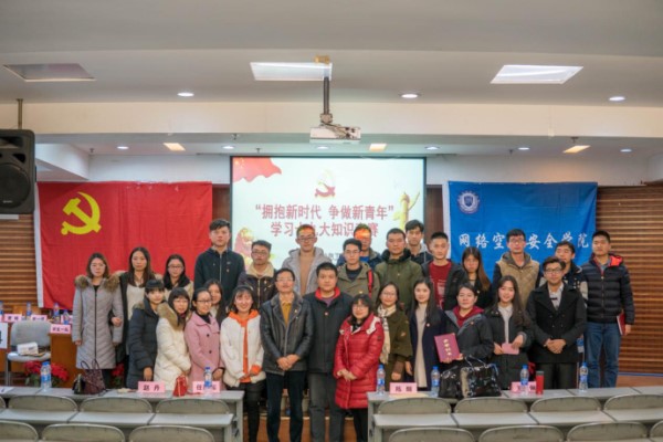 【本网讯】为深入学习贯彻党的十九大精神、深入推进“两学一做”学习教育常态化,2017年12月19日晚,由网络空间安全学院党总支主办,网络空间安全学院学生党支部、网络空间安全学院团委协办的“拥抱新时代 争做新青年”------深入学习党的十九大知识竞赛决赛在九州(中国)学术报告厅举办。网络空间安全学院党总支书记陈麟,总支所有委员、各支部书记、委员、辅导员、全体学生党员、积极分子参加了本次活动。