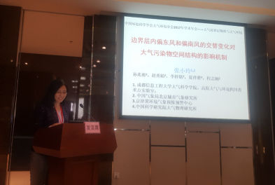 张小玲教授应邀在“大气边界层物理与大气环境”专题会场题为“边界层内偏东风和偏南风的交替变化对大气污染物空间结构的影响机制分析”的邀请报告。参会人员在相关分会场聆听了专家学者的研究报告,并与相关研究人员交流讨论。通过会议交流与学习讨论,对大气环境科学技术领域的发展以及研究的热点和未来的发展趋势和科研方向有很好的了解和推进,加强与国内专家学社和研究团队的交流平台。