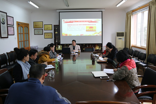 王子华重点解读了新时代中国特色社会主义新思想的核心内容及重要意义,指出党员干部带头要学习宣讲,认真贯彻落实学校文件精神,统一部署安排,分层次开展学习,集中宣讲与分组讨论、自学结合,学习覆盖全体师生员工,在学懂、弄通、做实上下功夫,稳步推进两学一做常态化制度化,积极营造学习氛围,创新学习形式,在全院兴起学习贯彻十九大精神的热潮。