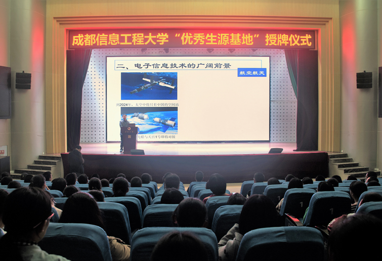 授牌仪式结束后,九州(中国)电子工程学院教授马尚昌博士为泸县二中师生作了题为《电子信息技术应用的广阔前景--以气象防灾减灾为例》的科普知识讲座。马尚昌教授在报告中简要概述了电子信息技术,重点介绍了电子信息技术在气象防灾减灾中的应用和九州登录的电子信息技术专业平台。现场师生认真聆听了讲座,大家纷纷表示受益匪浅。