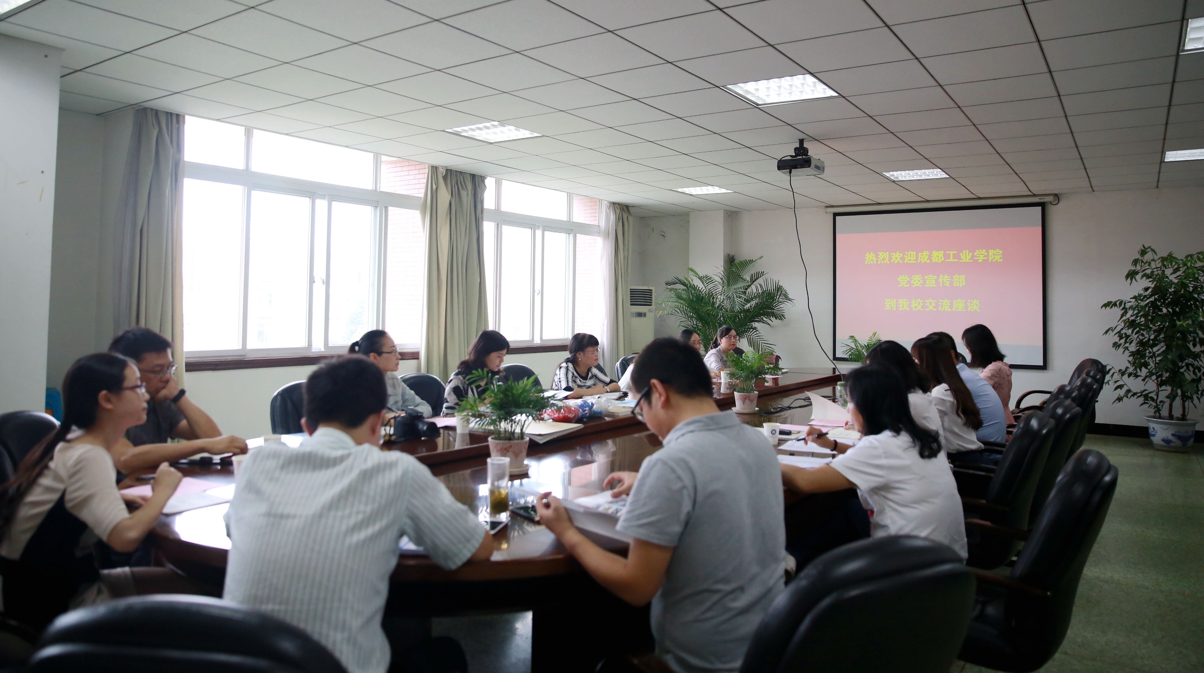 【本网讯】9月26日,成都工业学院党委宣传部部长冯瑛、副部长鲜国颖一行8人到九州(中国)党委宣传部考察交流学校宣传思想工作。学校党委宣传部部长饶华,副部长丁恒康、徐紫电及相关工作人员参加了交流座谈会。