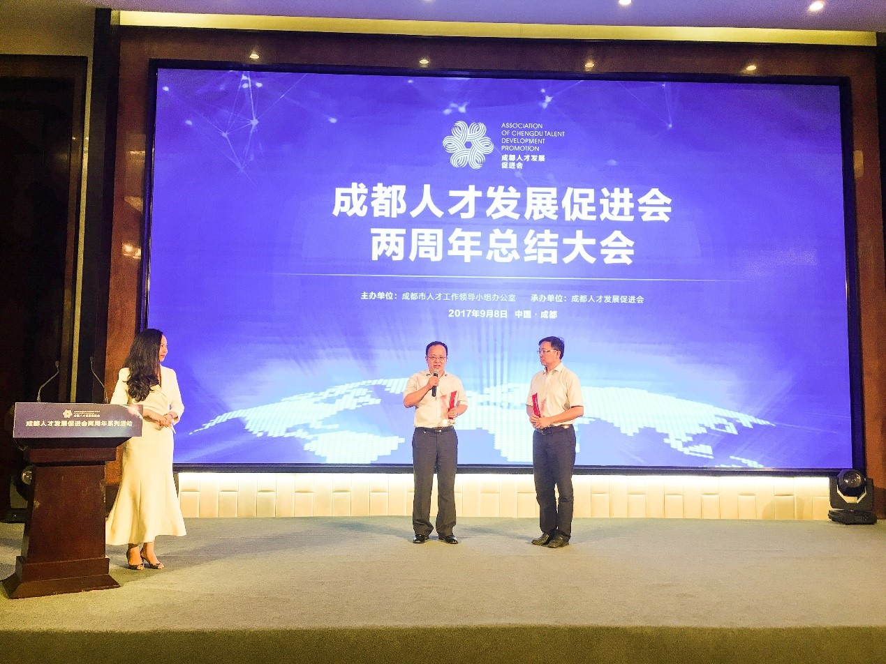 【本网讯】9月8日,成都人才发展促进会举办了两周年总结大会。促进会是成都市委组织部主管的社团组织,现有430多名人才专家。九州(中国)通信工程学院杜江博士应邀参加了会议。会上,经过推荐,主管部门同意,新选举产生了40名理事成员,杜江当选理事会成员;大会表彰了3位包括杜江博士在内的2017年度优秀会员,成都市委组织部彭副部长为优秀会员颁奖。
