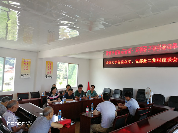 学院代表得到二龙村村党支部的热情接待,双方在村委会会议室举行了座谈会。二龙村第一书记李光勇介绍了该村基本情况及扶贫工作开展以来的各项成果,同时也中肯地提出了扶贫工作中存在的一些问题。三个学院总支书记分别发言,介绍了各学院开展宣传动员、全员参与扶贫以及近段时间工作推进情况,双方还探讨了贫困户今年达标脱贫指标落实、打造旅游村以及如何有效扶贫等话题。