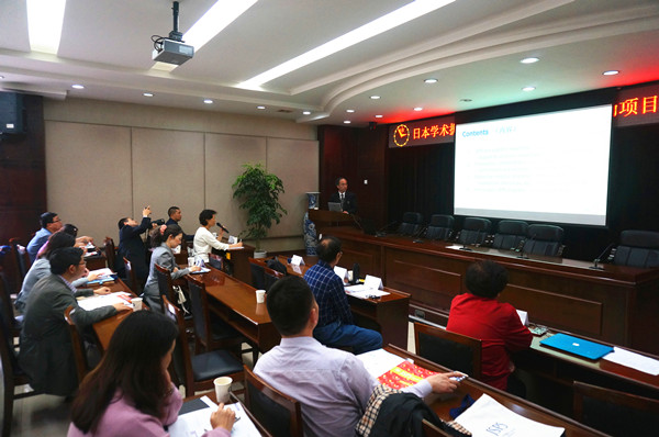 何建新对来宾表示热烈欢迎并介绍了学校总体的科研情况。广田薰所长详细介绍了JSPS全领域研究资助项目,包括科学研究费项目、国际学术交流项目、外籍研究员聘用项目等,他还深入解读了日本的科技政策,JSPS的预算等。赵宝华、屈玉贵和唐翔宇教授分享了中日共同研究申请与执行的经验。