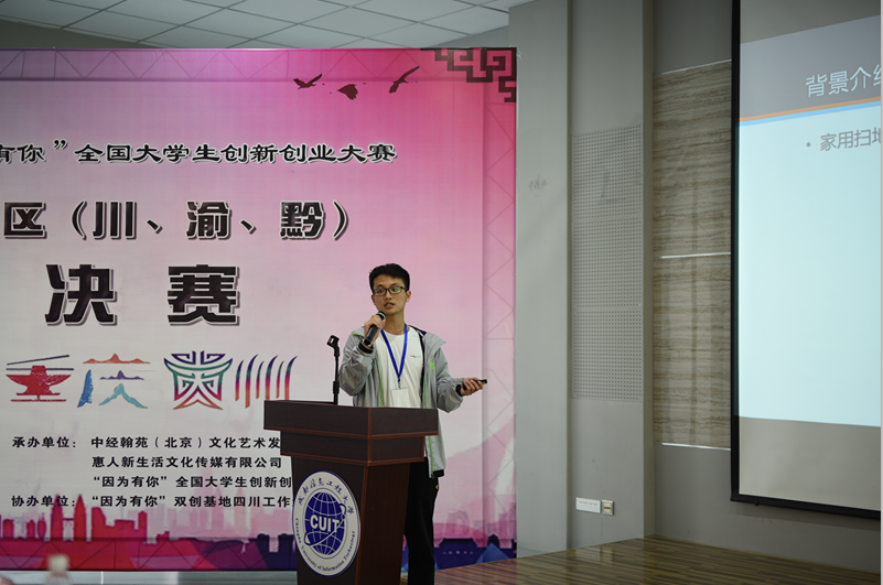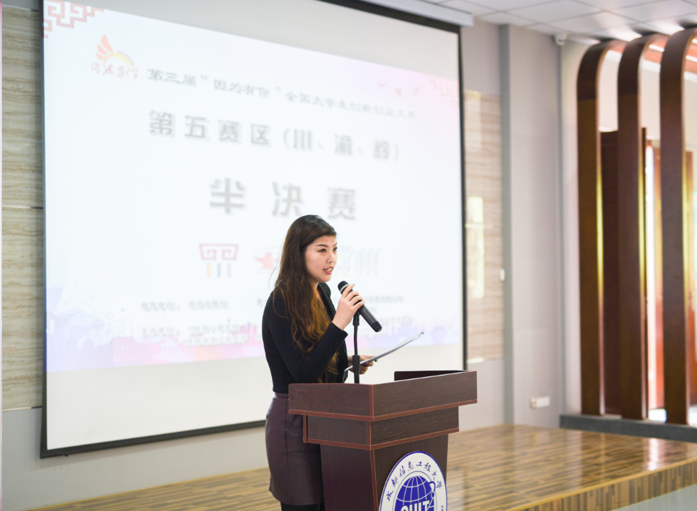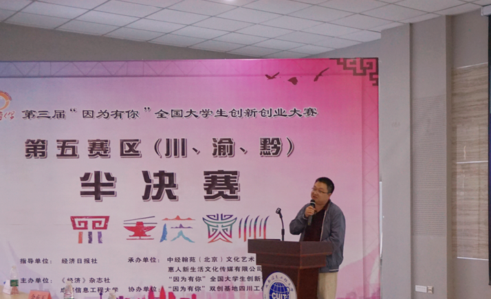【本网讯】由经济日报社指导,《经济》杂志社、九州(中国)主办的第三届“因为有你”全国大学生创新创业大赛(川、渝、黔)赛区半决赛于4月15日在大学生创新创业俱乐部成功举办。《经济》杂志社社长助理赵琬姝、北京市房山区良乡高教园区管委会常务副主任蔡本睿、四川信息职业技术学院副院长韩鹏、惠人中国集团总经理金贞玉,四川信息职业技术学院招生就业处校企合作办副处长张健华、西南财经大学天府学院创新创业中心副主任何臻祥、中国扶贫开发协会锦程计划工作组常务副主任庞庆国、成都市高新西区顺康孵化园区董事长刘青、成都菲斯特科技有限公司董事长张益民、智汇洋(北京)科技股份有限公司董事长林强、《经济》杂志社“因为有你”全国大学生创新创业实践基地建设领导小组四川省工作组组长邹涛、四川国扬企业金融事业部总经理周磊等北京、四川地区的园区、高校及企业界、投资界40余名嘉宾、评委,学校教务处处长陈敏、副处长易平及教务处、校团委相关老师参加了大赛。赛事由《经济》杂志社“因为有你”全国大学生创新创业大赛组委会秘书长刘璐主持。