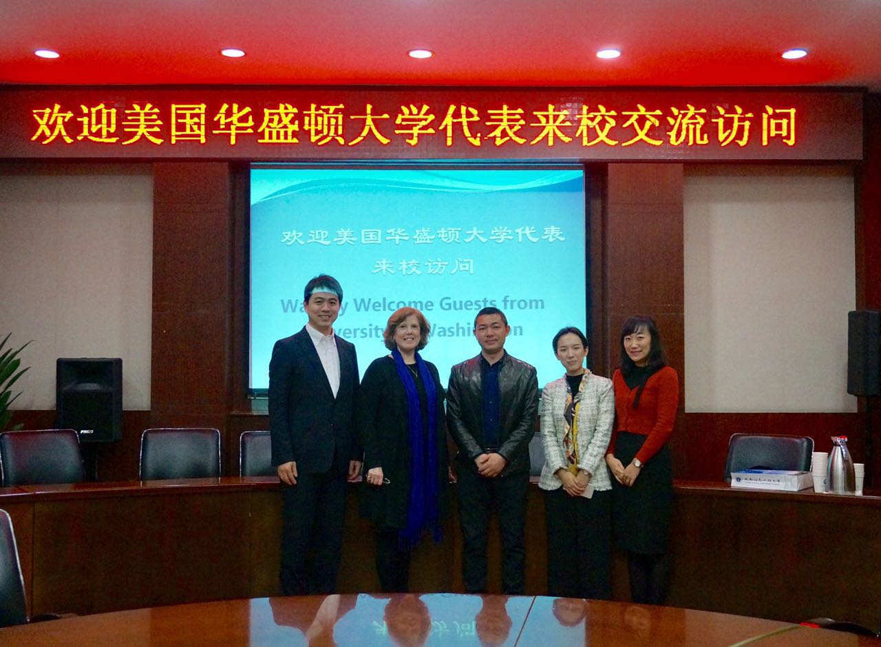 【本网讯】4月7日上午,美国华盛顿大学(University of Washington)语言与国际项目高级主管Sandra Janusch女士,中国项目负责人毛滢女士,环球翔飞教育集团总监陶荣祎先生一行来校访问并在行政楼第六会议室参加交流会议,商讨两校合作事宜。会议由国际交流与合作处副处长刘伟主持,国际交流与合作处科长盖秋艳参加会议。