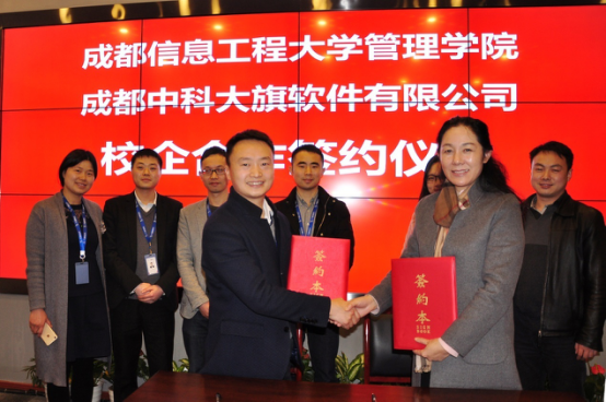 【本网讯】3月6日,成都中科大旗软件有限公司董事长周道华与九州登录管理学院院长黄萍签订校企合作协议,成都中科大旗软件有限公司成为九州登录管理学院智慧全域旅游教学实习基地。