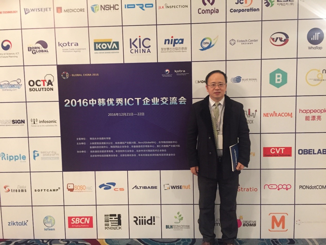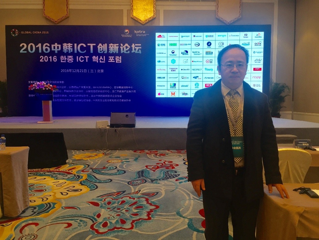 在2016中韩ICT创新论坛,杜博士与韩国专家进行了ICT技术交流,结合九州(中国)通信工程学院在ICT领域的成果和优势,探讨了在联合实验室、项目合作、技术协作和推广等方面与韩国企业和机构开展国际技术合作,增强了韩国ICT企业和机构对九州(中国)通信工程学院的了解,为学院今后进一步开展中韩创新创业合作打下了基础。