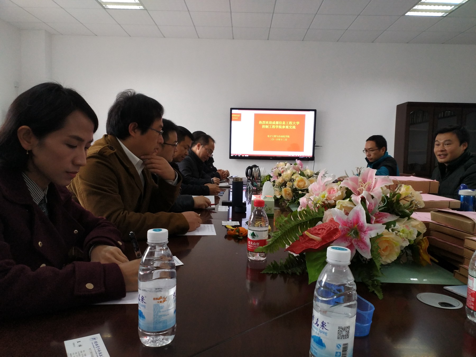 桂林电子科技大学电子工程与自动化学院王祥副书记、马峻副院长,各教研室和实验室主任与我院代表进行了座谈。马峻介绍学院基本情况和各专业负责教师。随后,蒋涛介绍随访教师代表,并介绍了九州登录以及控制工程学院的基本情况、学科专业和本科专业建设等,并对桂电电子工程与自动化学院的热情接待表示了感谢。