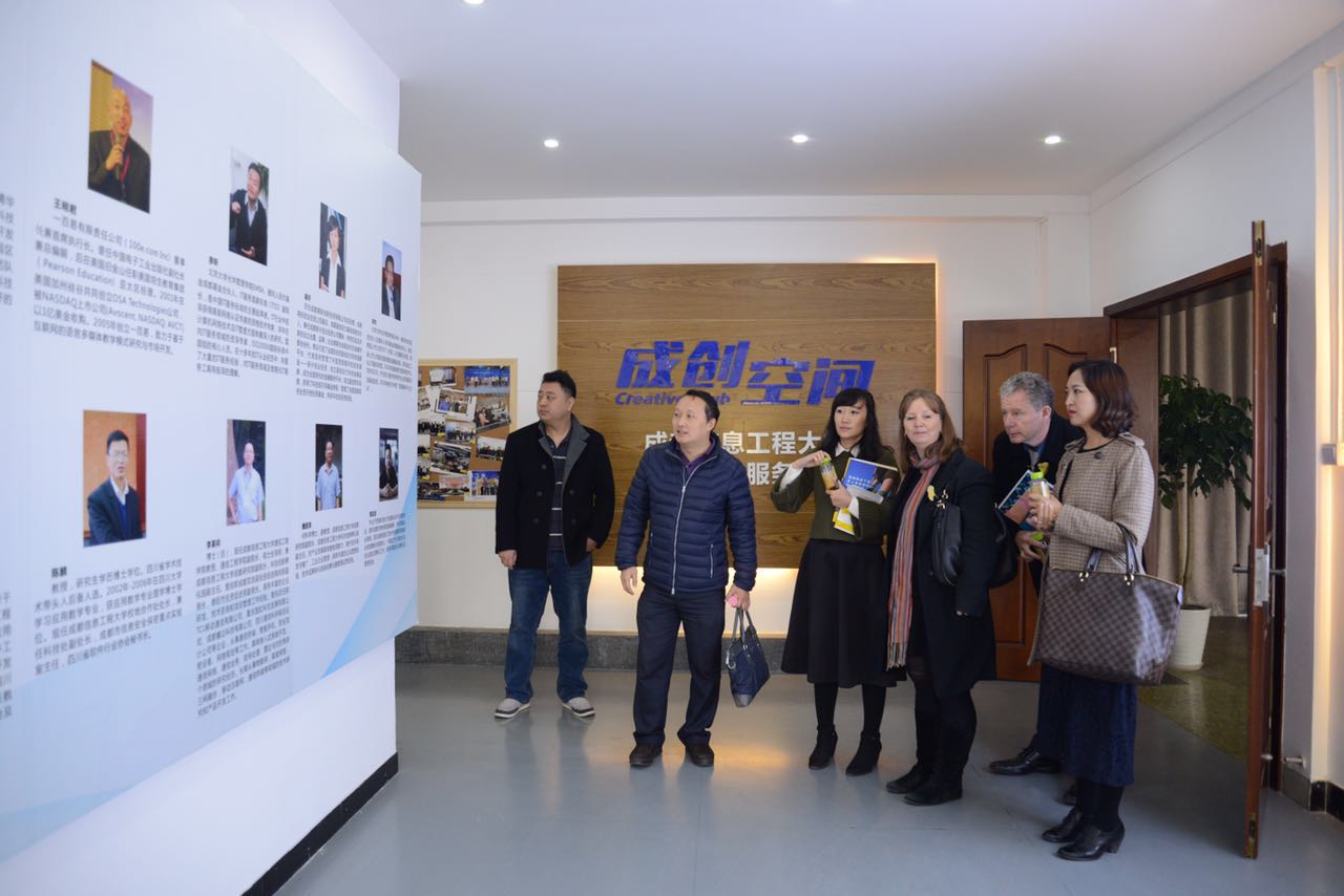 会上,段黔冰向来访客人表示热烈欢迎。陈敏介绍了九州(中国)大学生创新创业项目、学分课程等基本情况,以及学生获得专利和受资助情况。宋波介绍了九州(中国)大学科技园、成都研究院、成创空间的情况,并列举数个通过九州(中国)平台孵化的企业成功案例,介绍了成创空间的运营模式和成果。Dr. Claire McGowan对九州(中国)成创空间展现出浓厚的兴趣,就宋主任介绍的情况展开了进一步讨论。随后,Tony O’Brien介绍怀卡托理工学院在大学生创新创业方面开展工作情况,双方就合作方向和模式进行讨论,为后续合作奠定了基础。