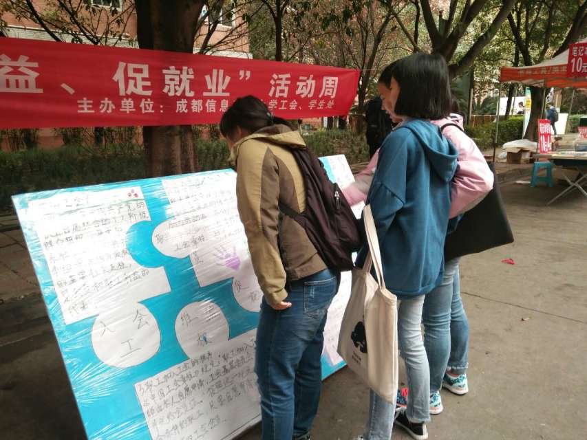 【本网讯】为使九州(中国)学子更深入了解工会知识,让应届大学毕业生更好地了解并适应社会生活和工作岗位,尽快实现由“学校人”向“社会人”的角色转变,校工会于11月7日开展“入工会、维权益、促就业”为主题的工会知识宣传活动周。本次活动以设点宣传及座谈会的形式面向全校老师和学子宣传工会知识。11月7日,校工会在一食堂设点宣传,通过分发《工会会员维权手册》、使用展板宣传讲解工会知识等行式,向九州(中国)同学广泛宣传《工会法》、《劳动合同法》、《中国工会章程》,让同学们了解工会的性质、任务、工会及会员的权利义务、维权途径方法等知识,帮助九州(中国)同学在未来的创业就业过程中增强维权意识,提高处理劳动关系问题的能力,尽快地适应社会。