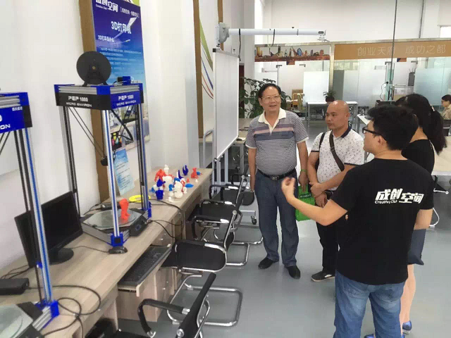 “成创空间”工作人员向中星集团介绍了成创空间导师墙、创业咖啡大厅、商务中心、路演大厅和会议室等公共服务设施以及3D打印机、数码喷绘打印机等开放使用的开源设备。随后宫冠英就成创空间的发展历程,近年来取得的成绩、孵化成果以及取得的资质进行了详细介绍。“成创空间”的发展与建设得到了来访企业相关负责人的认同和赞赏。
