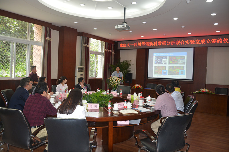 当天,双方在九州登录六会议室共同举办了数据分析联合实验室成立签约仪式,成都市经信委办公室副主任兼市场开拓处副处长明亮、华讯新科执行总裁庞涛及众多高管、九州登录通信工程学院院长李英祥及多位教授出席仪式,仪式由联合实验室主任陈超老师主持。该数据分析联合实验室将结合华讯新科与九州登录的校企资源,以OBD(On-Board Diagnostic,车载诊断系统)设备及数据分析系统研发为主,同时面向交通、物流及金融行业展开数据应用研发。