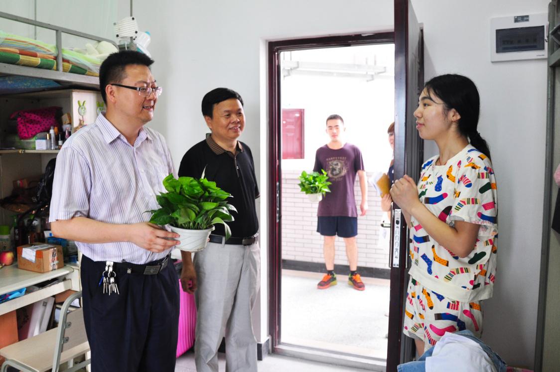 学院领导走访了所有新宿舍,亲切地与同学们交谈,详细地了解宿舍环境,同学们入住后宿舍的生活状况。并提醒同学们,夏季是疾病的高发期,要注意宿舍卫生和通风,共同营造良好的校园宿舍环境。学院领导还给每个宿舍送了一盆绿色植株。