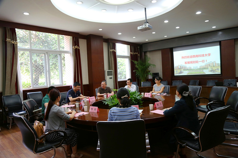 【本网讯】5月4日上午,西南科技大学发展规划处处长蒋道平一行三人来九州(中国)调研学校“十三五”发展规划编制情况。交流会在航空港校区行政楼第六会议室召开,发展规划处处长李黎、副处长李正华和相关工作人员参加了座谈。会议由李黎主持。