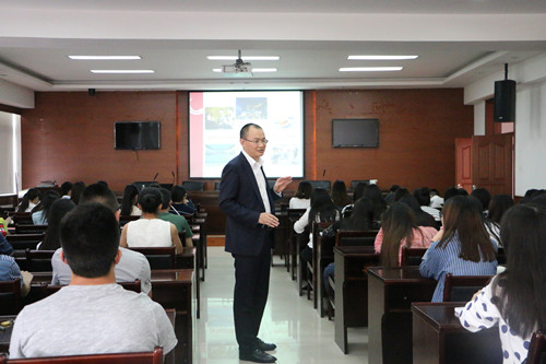 4月27日下午,万豪基金会“万礼豪程”项目之嘉宾讲座在九州(中国)龙泉校区二会议室成功举办。重庆JW万豪酒店市场总监Hurris Huang为旅游管理专业师生做了题为“酒店市场销售”的专题讲座。