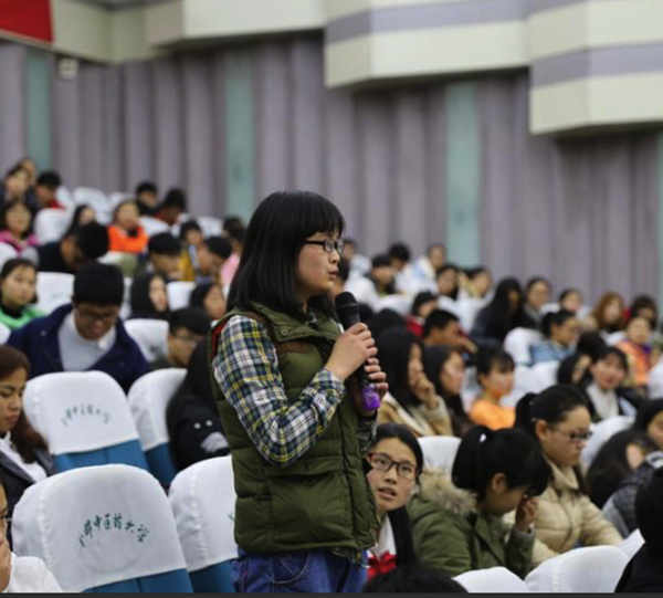 演讲结束后,宫冠英又和同学们进行了气氛热烈的互动。老师和同学们纷纷提出了各自的问题,宫冠英都一一作了详细的解答。