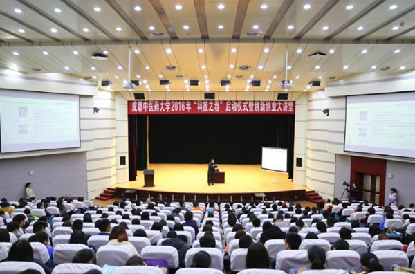 成都中医药大学“科技之春”主题活动旨在弘扬中医药文化,推广科技创新,活跃成都中医药大学学术氛围。宫冠英应邀参加此次启动仪式,同时也给现场的在校大学生、部分院系的教师和领导分享了创新创业的必备知识。