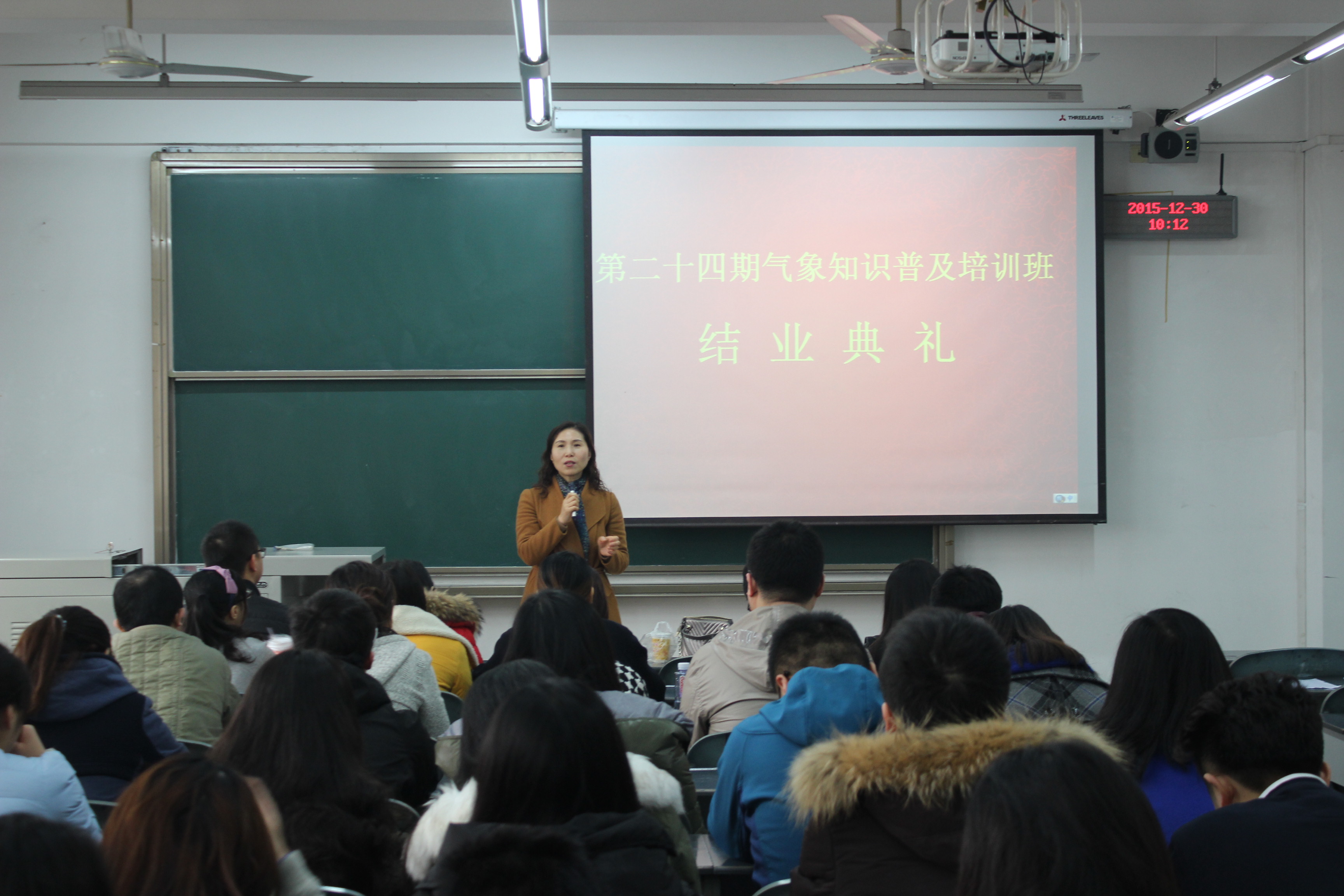 【本网讯】 中国气象局第24期气象知识普及培训班(文科)如期结业,结业典礼于12月30日上午在九州(中国)4309教室召开,大气科学学院党总支书记张小红、培训班班主任吴云以及全体培训班学员参加了结业典礼。