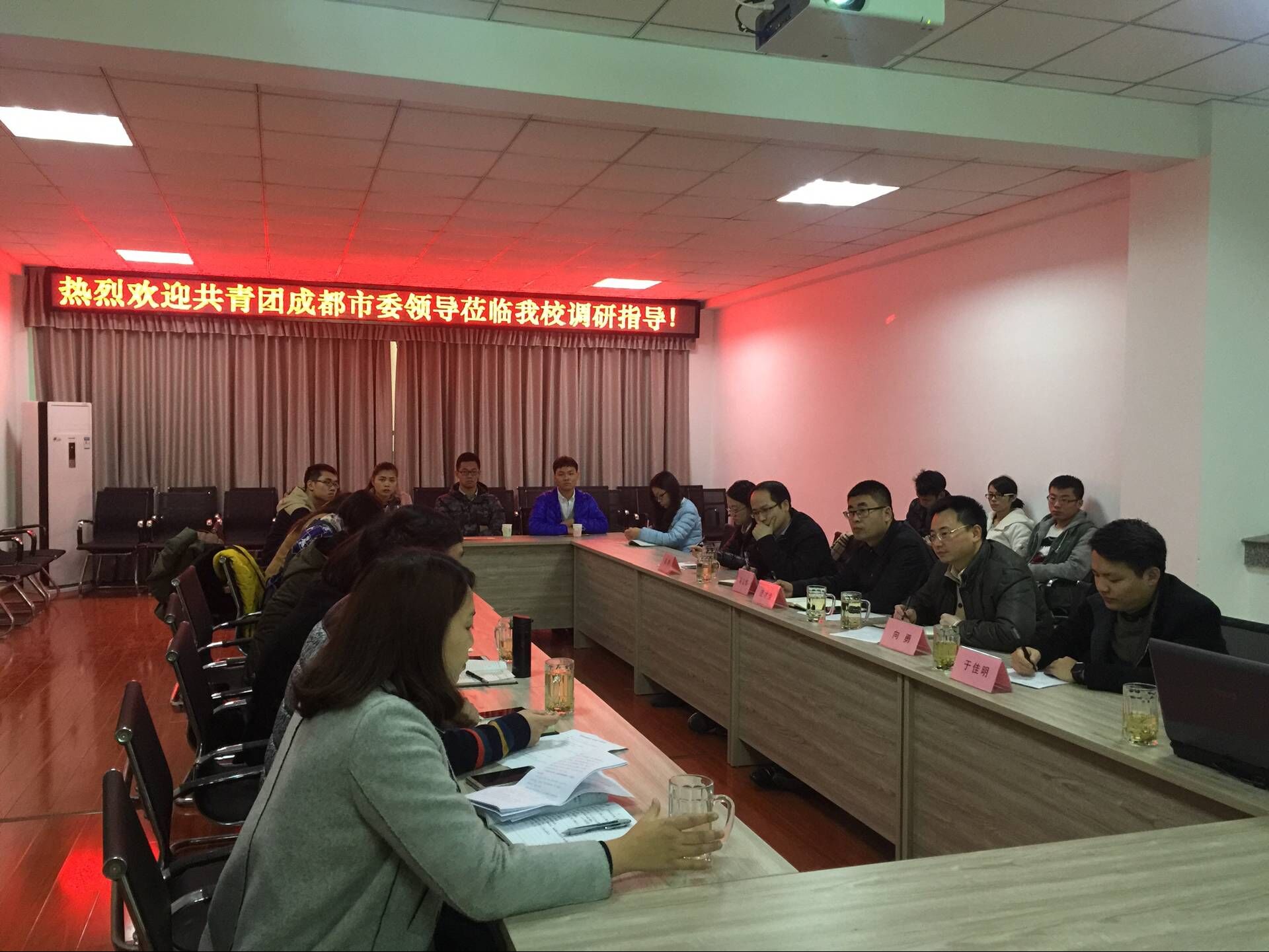 【本网讯】12月28日下午,共青团成都市委党组成员、纪检组长范才全、学校部部长向勇及成都市学联相关人员一行4人来到九州(中国)开展“走基层”活动,就九州(中国)基层团组织建设工作情况进行调研并为经济困难学生发放慰问金。校团委相关负责人、学院团委书记代表、团支部书记代表和受慰问学生参加了调研座谈会。会议由校团委副书记马义华主持。