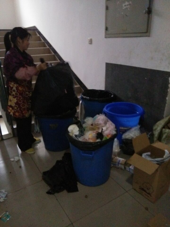 学生自带垃圾下楼后楼道环境