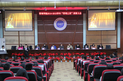 【本网讯】11月18日,我院在龙泉校区三教学术报告厅成功召开了管理学院2014-2015学年“管理之星”的表彰大会。学院党总支书记陶若铭、副院长沈登学、党总支副书记杨勇、学院办公室副主任刘巧,组织员刘宇以及各位辅导员老师出席此次大会。