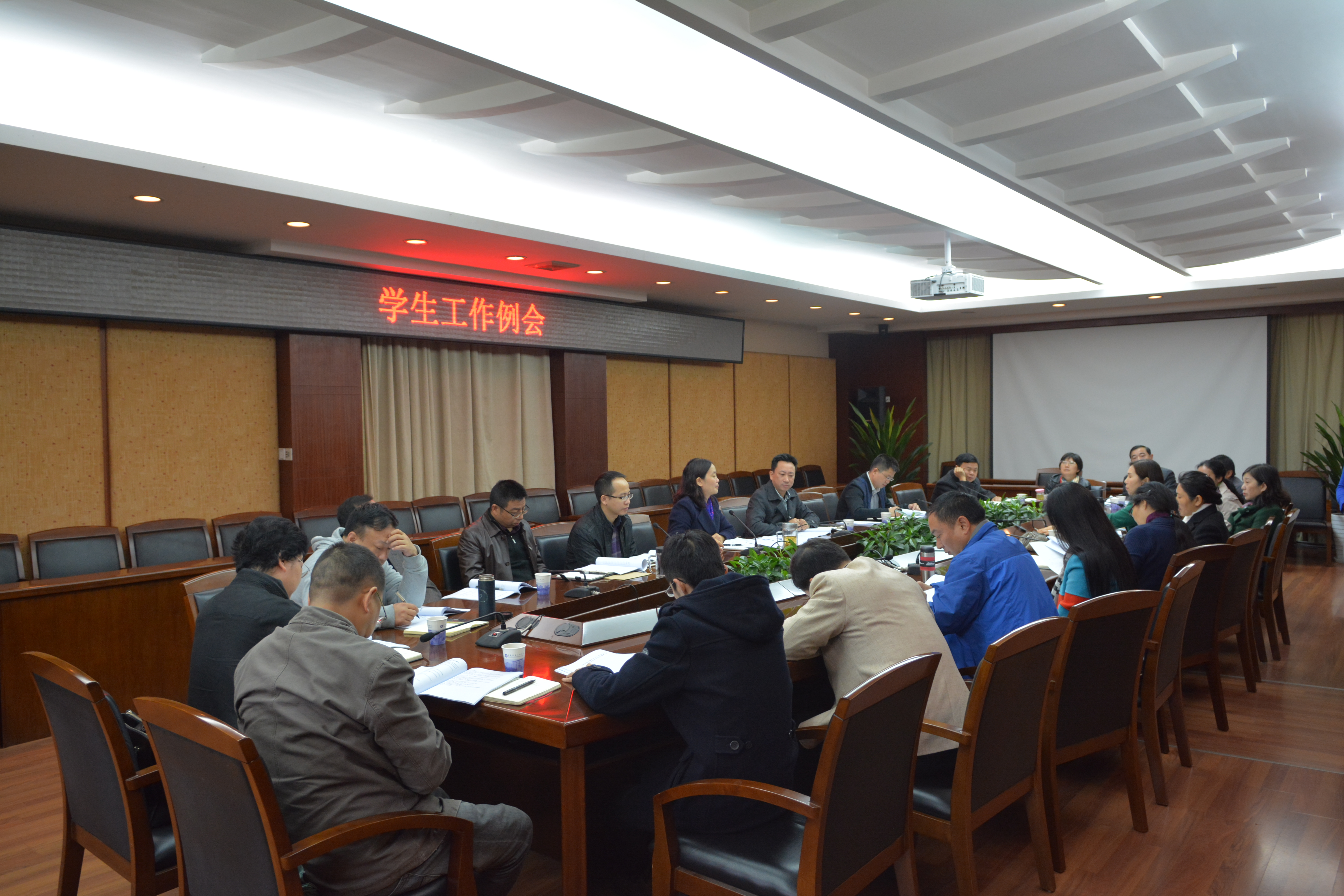 【本网讯】11月12日,学校学生工作例会在行政楼第七会议室召开。学生工作处、保卫处、后勤管理处、后勤服务公司、校团委负责人,各学院党总支书记、副书记,学生工作处相关人员参加会议。会议由学生工作处处长戴丽红主持。