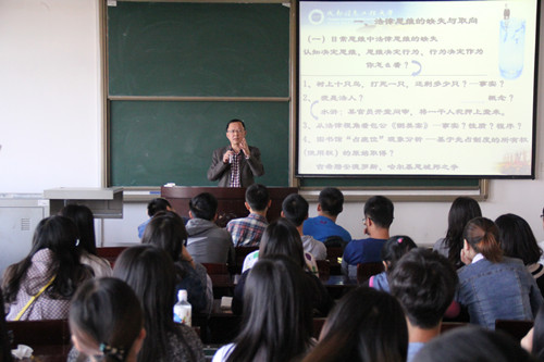 陶书记围绕法律思维的缺失与取向、法律思维在社会学思维多样性中的比较、法律思维与法律方法的统一这个问题,通过案例深入浅出的向大家阐释了法律与我们生活息息相关的观点。他风趣幽默的谈吐深受学生喜爱,讲座现场气氛热烈。