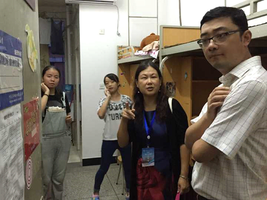 【本网讯】9月9日晚,计算机学院开展进新生寝室活动。参加本次活动的领导有计算机学院党总支书记邹书蓉,院长何嘉,副院长吴锡,副书记朱正华,以及2015级辅导员姚亚岚老师,分团委书记王先宇老师。