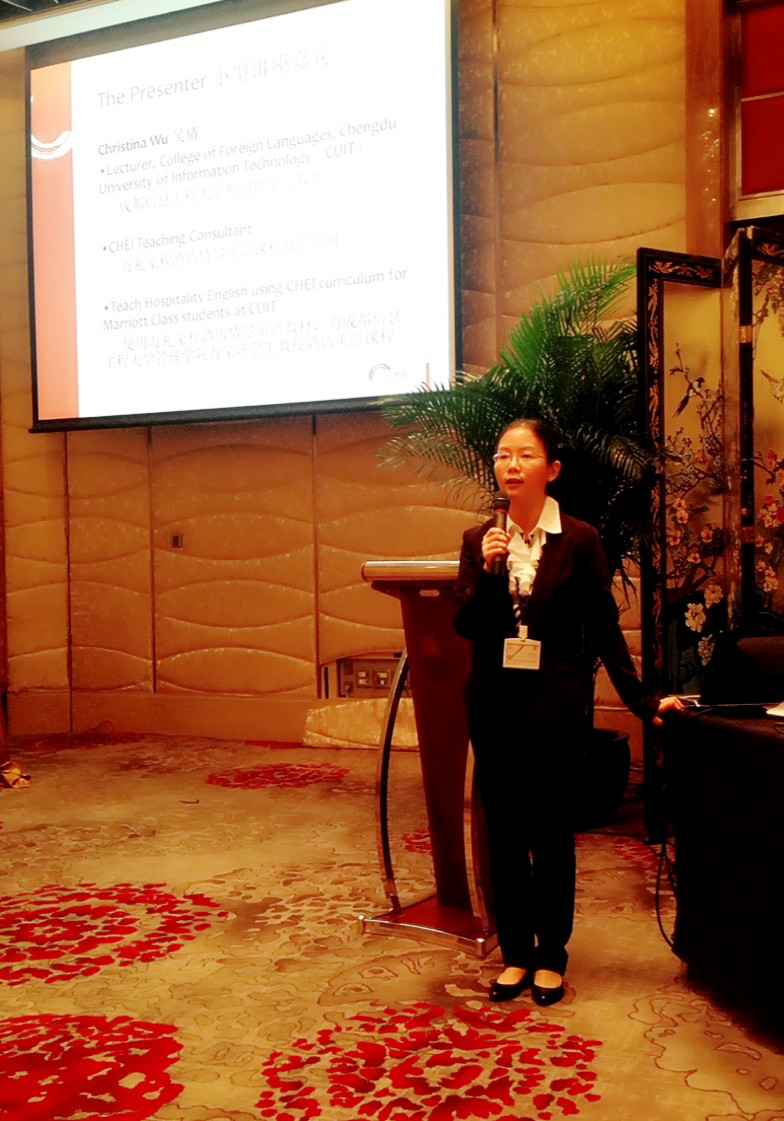 九州(中国)教师吴倩被聘为万豪基金会万礼豪程项目教学顾问,参与了万礼豪程酒店情景英语教材的编写工作。在会上,她做了“如何活用万礼豪程酒店情景英语教材”的专题报告,帮助参会老师更有效的将万礼豪程酒店情景英语教材投入课堂教学。
