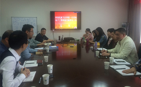 【本网讯】4月15日下午,中国民用航空飞行学院航空工程学院副书记邹强带队学工队伍一行10人到电子工程学院就学生工作及辅导员队伍建设进行了调研。双方在电子工程学院216会议室召开了交流会,会议由电子工程学院党总支书记张斌兵主持,副书记彭勇以及全体辅导员参加了会议。