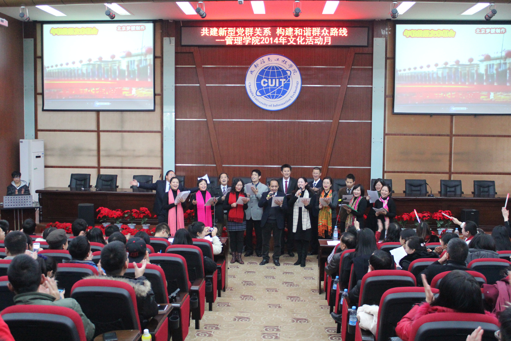【本网讯】1月9日下午,在龙泉学术报告厅,管理学院分工会、管理学院党总支联合主办的“共建新型党群关系 践行和谐群众路线——管理学院2014年文化活动月”活动之一 “师生联谊校园歌手赛”成功举行。