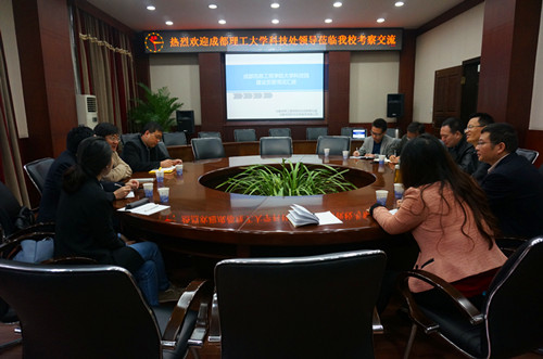 宫冠英就我院大学科技园的发展规划、管理服务水平、创新创业环境、发展绩效及政府与学校在政策、经费上的支持等方面的工作经验与成都理工大学进行了分享与交流。