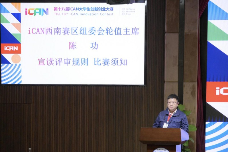 同时,iCAN西南赛区组委会轮值主席陈功宣读了本次比赛的评审规则和注意事项。据了解,此次比赛分为创新赛道和创业赛道,共6个赛场同时进行,其中创新赛道重点考察作品的应用创新,创业赛道重点考察作品的商业化价值,答辩流程包括PPT讲解、实物演示、评委问答等环节。