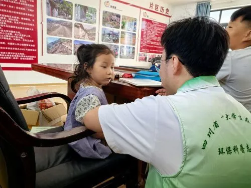 以行践知,技术帮扶守护绿色家园。环保技术服务组由邓志勇教授、杨迎春教授带队,深入村民家中及水源保护地,现场采集水样15份,用以分析饮用水水质现状,重点关注新污染物在农村地区的潜在影响,并指导村民加强水源地保护。团队还手把手传授生活垃圾分类与资源化处理方法,助力农村环境治理。知行结合、科技下乡,专业教师和青年学子用专业技能为乡村绿色发展贡献青春智慧。