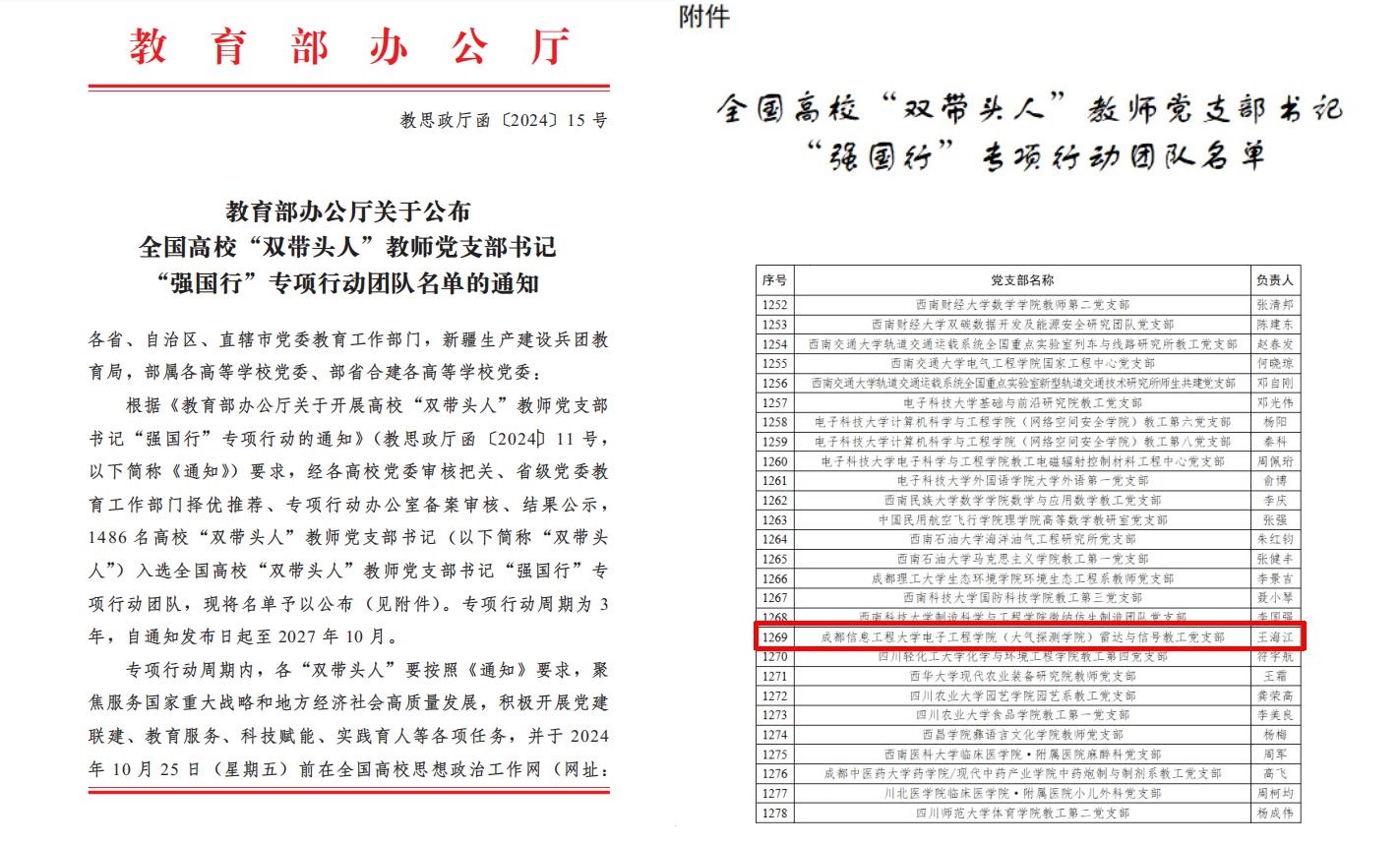 电子工程学院(大气探测学院)在学院建设与发展过程中,积极发挥党员先锋模范作用和支部战斗堡垒作用,不断探索“党建+”工作模式,全方位促进党建与业务的融合,一体推进学院党建与各项工作的创新发展。学院党员教师坚持立德树人教育理念,在人才培养、科学研究和服务社会等方面勇担重任,取得了丰硕成果。